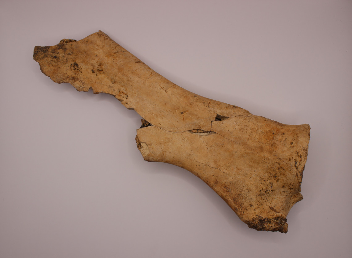 Bei diesem Knochen handelt es sich um das Schulterblatt eines Pferdes. Er stammt aus einer Ausgrabung im Sommer 2005 an den Gräben des Kastells Ruffenhofen. Hier war eine teilberittene Einheit stationiert. Die Pferde lebten neben den Soldaten in den Baracken.