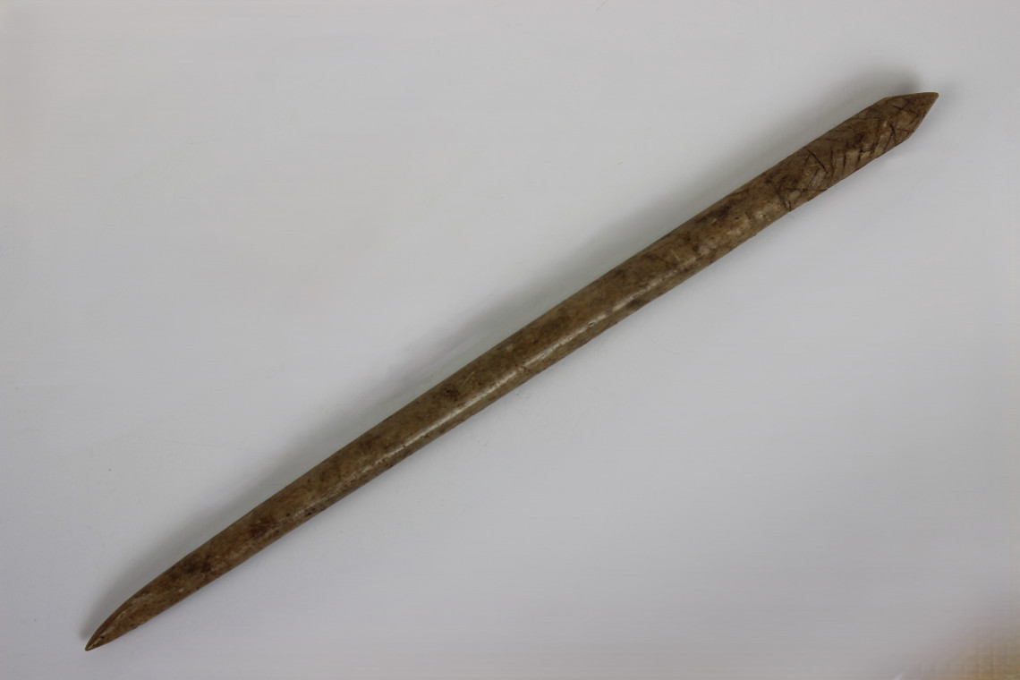Eine Nadelverzierung befand sich am sogenannten Kopf, dem stumpfen Ende. Sie konnte komplett fehlen, nur schwach eingeritzt sein (wie in diesem Objekt) oder sogar vollplastische Figuren darstellen.