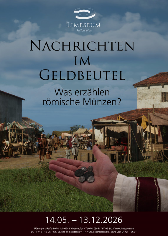Römisches Geld bildete die Grundlage für den Handel, diente aber zugleich auch der Nachrichtenübermittlung. Durch Münzbilder gelangten wichtige Informationen zur Innen- und Außenpolitik an den Limes. Was steckt dahinter? Wie gut verstanden die Einheimischen diese Szenen? Gab es Münzfälscher? Diese und viele andere Fragen rund ums römische Geld werden in der Sonderausstellung erläutert.